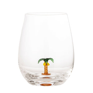 The Misa Drinking Glass by Bloomingville, with its surprisingly cute design, brings joy and personalizes any table setting. This unique glass is mouth-blown and hand-decorated with a quirky palm tree at the bottom. Being handmade, slight variations may occur, making each glass unique. Cheers!