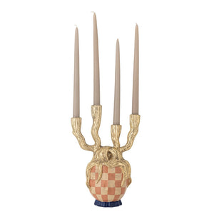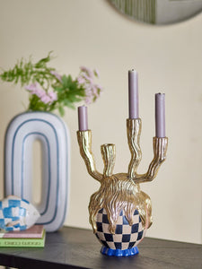 The Medusa Candle Holder by Bloomingville is an artistic candle holder that adds an artistic touch to your decor. The candle holder is carefully hand-painted, making each piece truly unique. The golden colors and checkered design make it an eye-catching element, perfect for placing on the dining or coffee table.