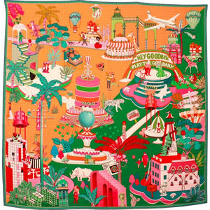MAISON FANLI Silk Scarf 50×50 - Gateaux Green