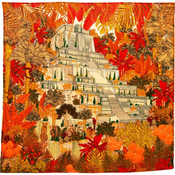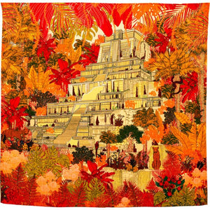 Wool & Silk Scarf Tropical Temple Ocher- 70x70 cm