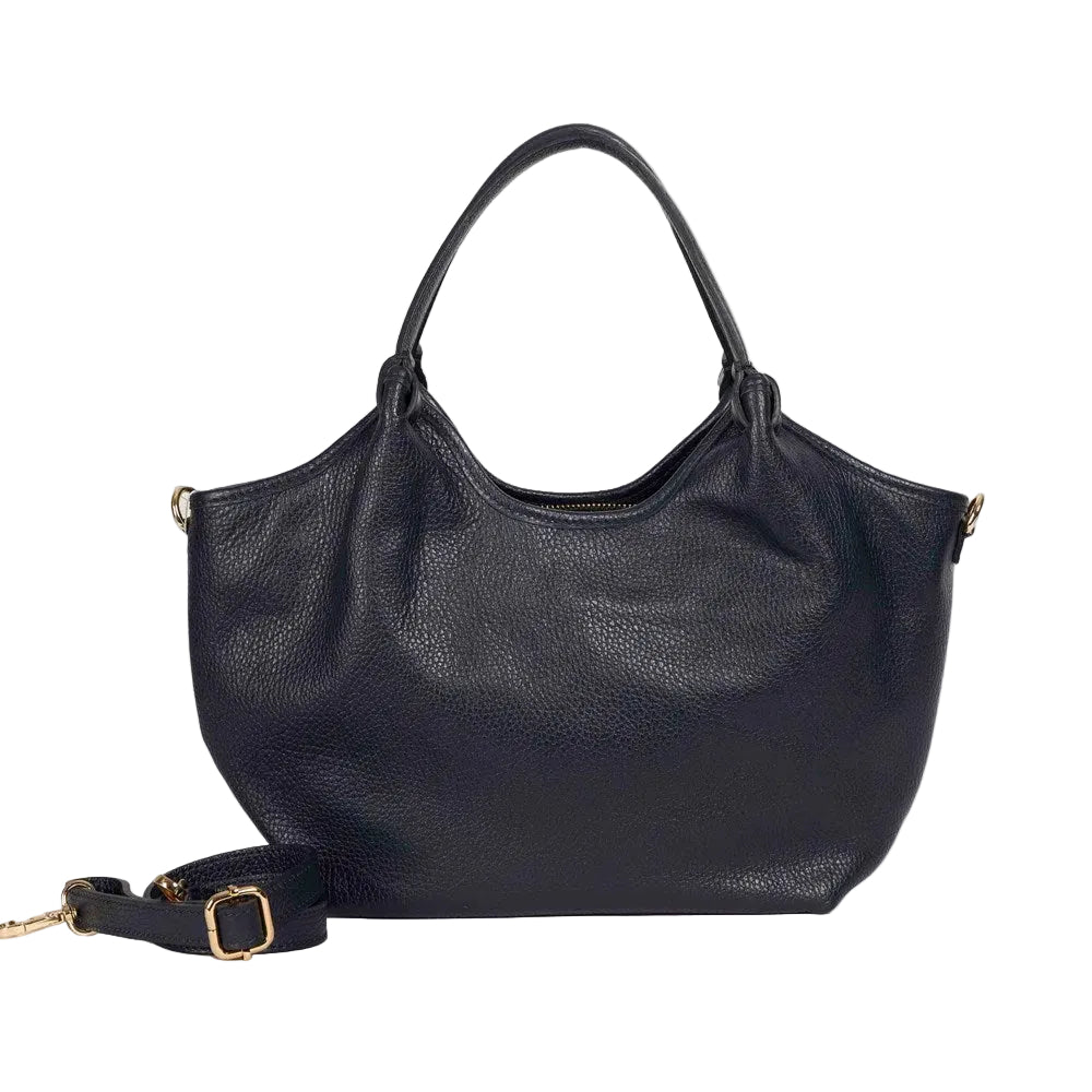 Designed with rounded top handles for hand carry and a removable, adjustable shoulder strap, it can be worn on the shoulder or crossbody with ease. A secure zip-top closure opens to a fully lined interior, featuring one large zipped pocket on one side and two slip pockets on the other for practical everyday organisation.