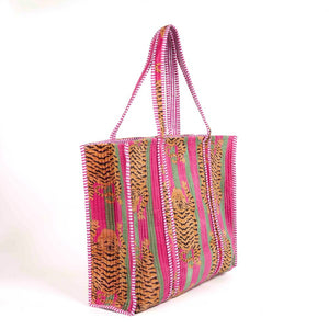 PARISIAN COOL Velvet Tote - Tiger Pink Stripes
