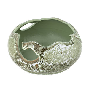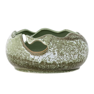The Leonas Bowl by Bloomingville is both decorative and great for storing og displaying smaller items. The design also makes it perfect for holding yarn while knitting. It has a unique shape and glaze in gorgeous green colors. It varies in glaze and color.