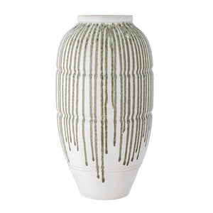 The Scarlet Vase by Creative Collection is a tall and beautiful hand decorated vase in a white color with a green running glaze. Perfect on the floor and table. Each piece is unique as it is decorated by hand.