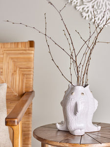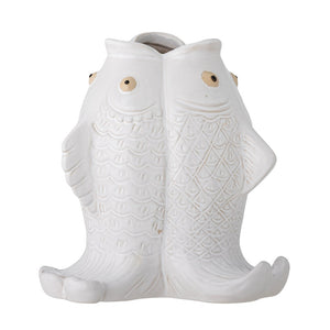 The Fili Vase by Creative Collection is made of stoneware in a white color. Inspired by the sea, the vase depicts three fish, adding a humorous and distinctive element to any decor. Decorative both with and without flowers.